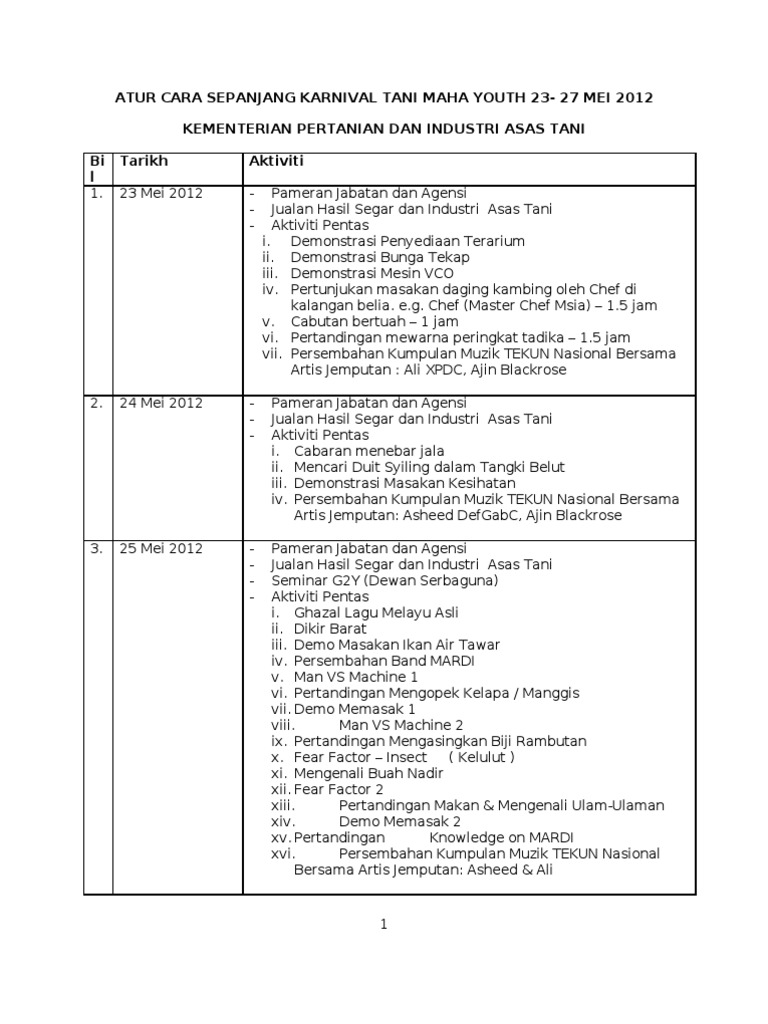 Atur Cara Sepanjang Karnival Tani Maha Youth PDF