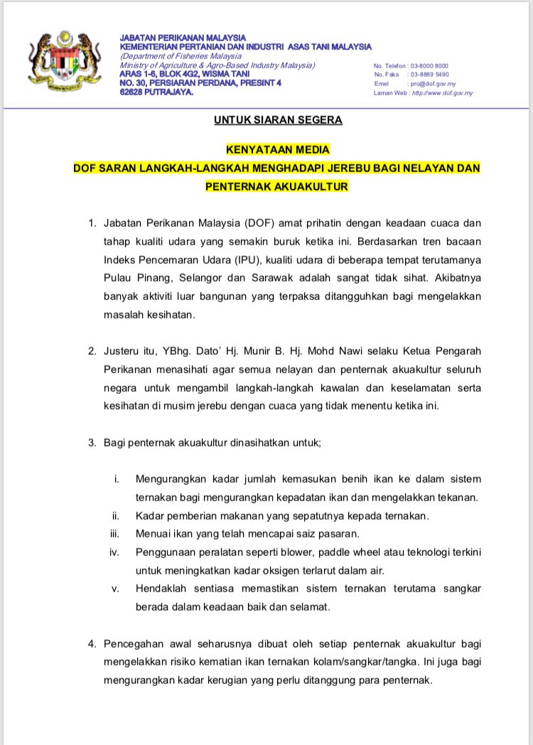Jabatan Perikanan on Twitter: "Kenyataan Media ; Jabatan Perikanan